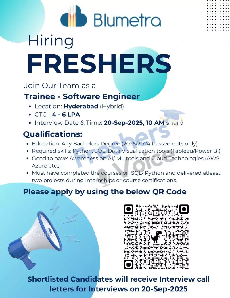Blumetra Solutions Off Campus Drive 2025 โย Blumetra Solutions is scheduled to hire Trainee โ Software Engineers forย Any Degree graduates. Candidates looking for jobs in Hyderabad can utilise this opportunity. Interested and eligible candidates can apply online as soon as possible & attend the drive on 20 September 2025. The detailed eligibility criteria and application process are given below. Interested candidates can apply for Siemens Careers.