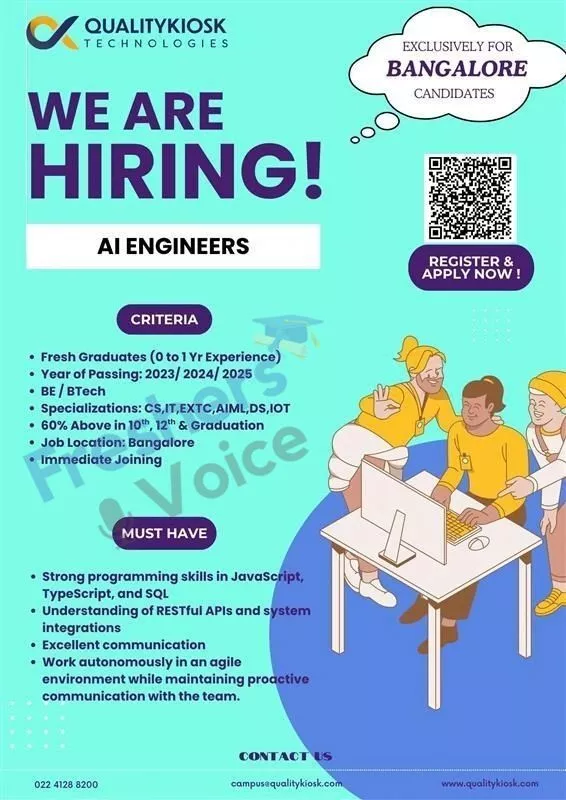 Qualitykiosk Off-Campus Drive 2025: Exciting Opportunity! Qualitykiosk Technologies is hiring B.E/B.Tech graduates for AI Engineerย role. The working location will be Bangalore. Interested candidates can apply for this job online as soon as possible. The detailed eligibility and application process are given below. Interested candidates can also tryย Iris Software Off Campus Drive.